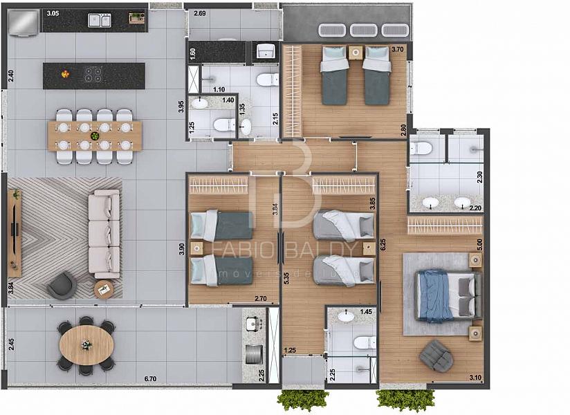 4 dormitórios (3 suítes)